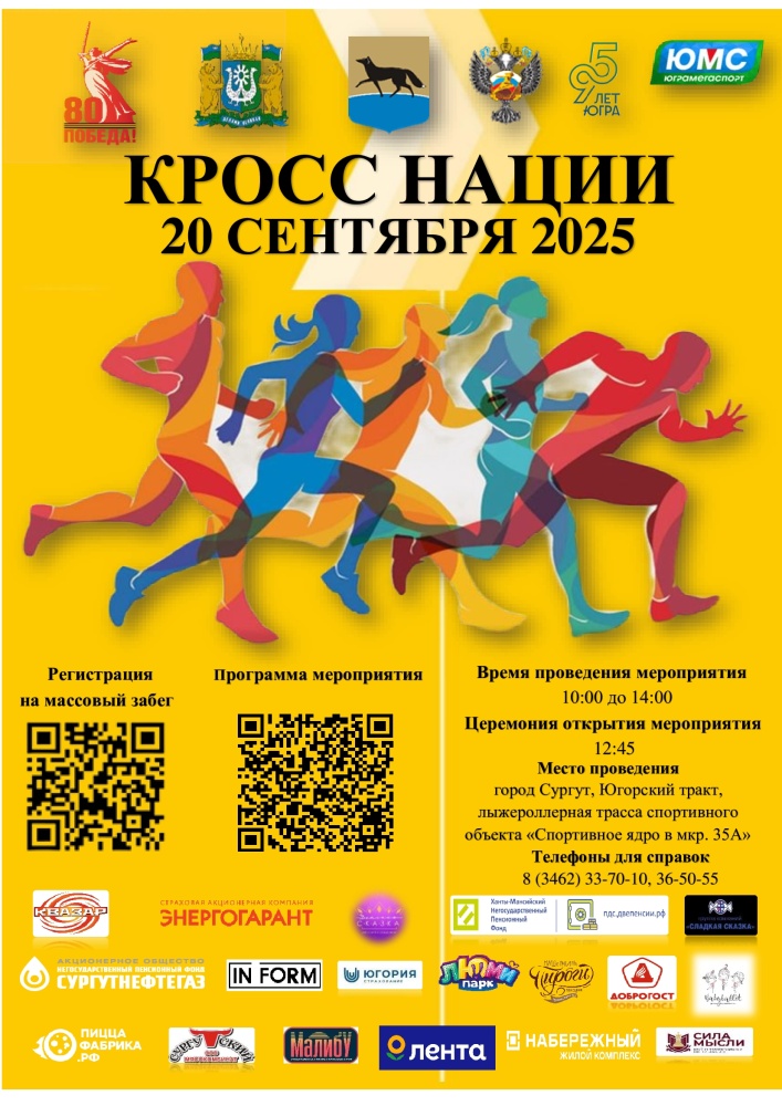 20 сентября 2025 года на спортивном объекте «Спортивное ядро в микрорайоне 35А» (Югорский тракт) состоится легкоатлетический забег в рамках Всероссийского дня бега «Кросс Нации – 2025».