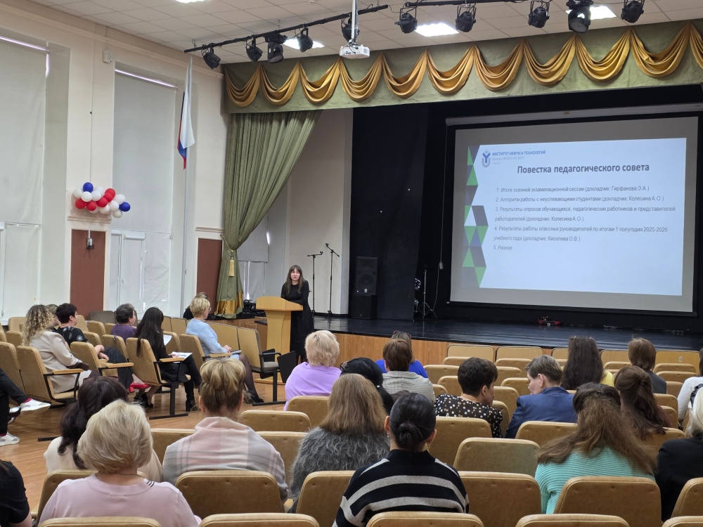 Сегодня в актовом зале нашего института прошел Педагогический совет. Участники обсудили важные аспекты образовательной деятельности и дальнейшего развития заведения.